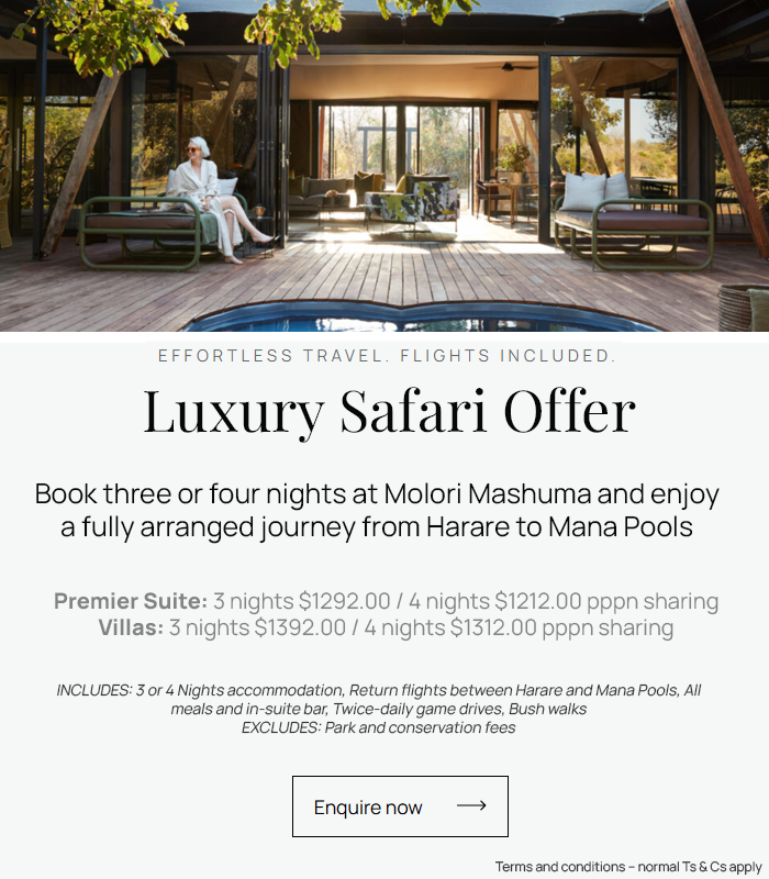 The blend of authentic African design and sophisticated luxury makes Molori Mashuma a truly exceptional destination for discerning travellers.